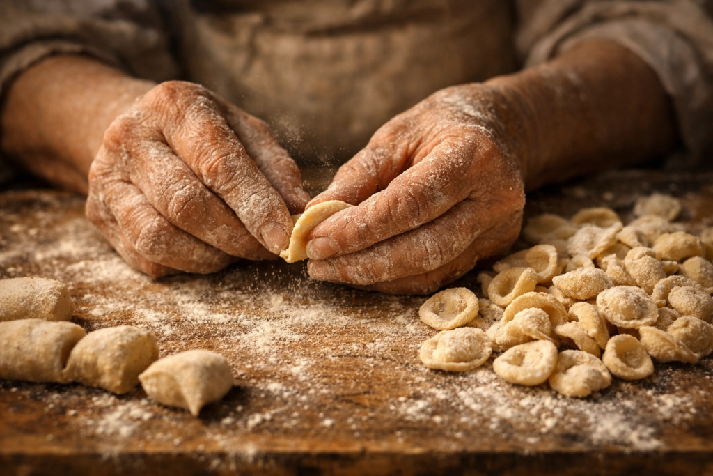•Puglia: Celeiro da Itália, com Orecchiette con Cime di Rapa (“orelhinhas” com brócolis), Burrata (mozzarella cremosa por dentro), Focaccia Barese e Taralli (biscoitos salgados crocantes) .