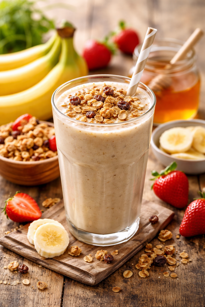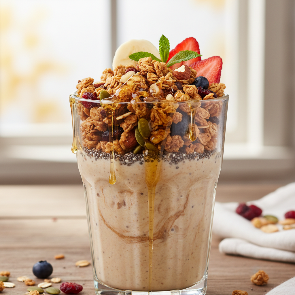 Vitamina de granola no café da manhã